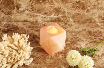 1 natural Rose quartz candle holder.